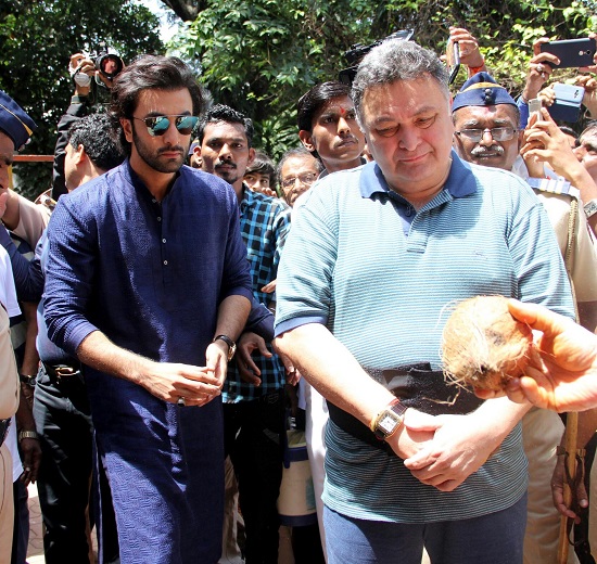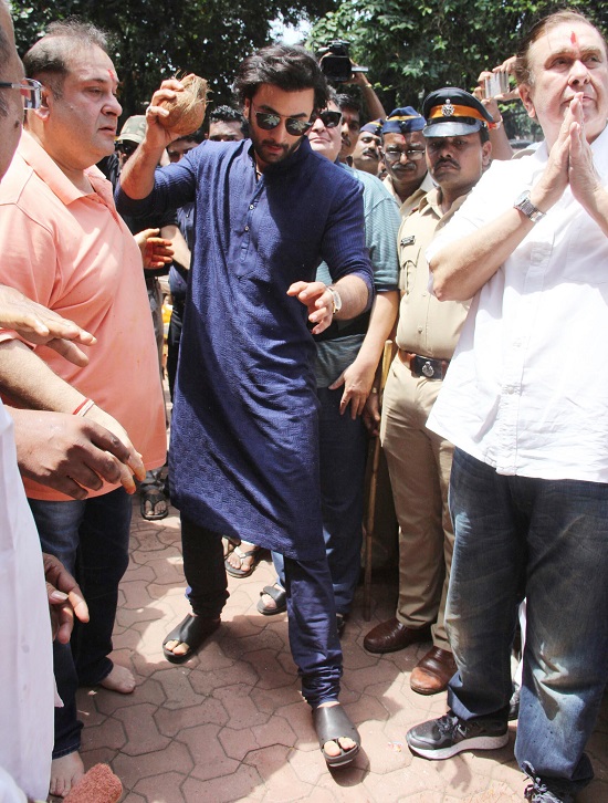 विसर्जन के लिए यह यात्रा पूरे रीति रिवाज़ों के साथ शुरू हुई। नारियल फोड़ कर इस यात्रा को आगे बढ़ाया गया। पापा ऋषि कपूर के साथ रणबीर कपूर काफी उत्साहित नज़र आये।