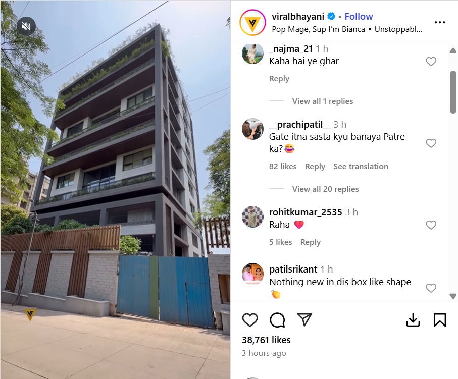 लोगों को यह बात बहुत मजेदार लगी कि घर आखिरकार बनकर तैयार हो गया, लेकिन गेट अभी तक नहीं लगा है। इस पर कई लोग फनी कमेंट्स भी कर रहे हैं। एक यूजर ने टिप्पणी की, “इतना खर्चा हो गया कि नया गेट बनाने के पैसे ही नए बचे।” एक अन्य ने मजाक में कहा, “गेट इतना सस्ता क्यों बनाया है? दरअसल गेट पर फ्लैटबोर्ड लगा हुआ है। एक ने तो यहां तक लिखा, “रणबीर कह रहे हैं कि मैं मेन गेट नहीं बनवाऊंगा।"