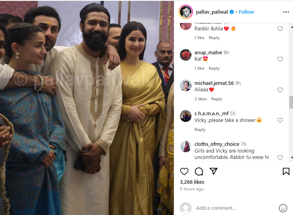अन्य यूजर ने लिखा, "मुझे लगता है कि दोनों गर्ल्स और विक्की काफी अनकम्फर्टेबल हैं"। हालांकि, इस बीच कई फैंस इन चारों की तस्वीर पर प्यार भी लुटा रहे हैं।