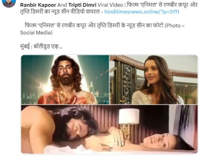 'एनिमल' में रणबीर कपूर का तृप्ति डिमरी के साथ एक्स्ट्रा मैरिटल अफेयर दिखाया है। फिल्म में दोनों का इंटीमेट सीन है। सोशल मीडिया पर उस समय सीन से जुड़ी एक फोटो वायरल हुई है, जिसमें तृप्ति सेमी न्यूड लेटी हैं और रणबीर उनके पेट पर सिर रखे हुए हैं। रणबीर के साथ थोड़े टाइम के लिए ही तृप्ति ने स्क्रीन स्पेस शेयर किया है। उनके साथ काम करने की एक्सपीरियंस ने एक्ट्रेस ने कहा कि वह दोबारा रणबीर के साथ कोलैबोरेट करने की उम्मीद रखती हैं।
