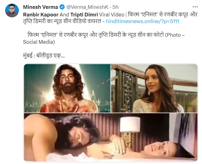 Animal Intimate Scene: सोशल मीडिया पर छाया रणबीर कपूर-तृप्ति डिमरी का न्यूड वीडियो सीन, क्लिप देख उड़े फैंस के होश