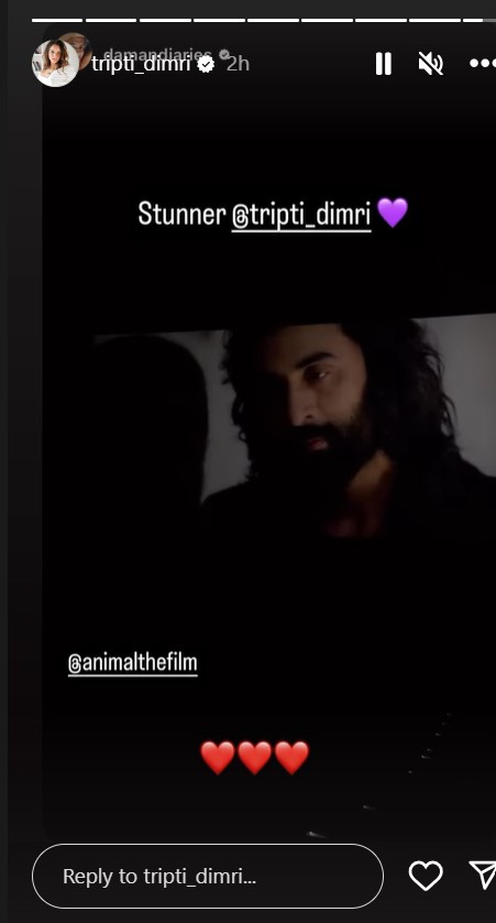 एक यूजर ने दोनों की केमिस्ट्री की तारीफ करते हुए लिखा, "रणबीर कपूर और तृप्ति डिमरी की केमिस्ट्री ने पूरी स्पॉटलाइट ही छीन ली। स्क्रीन पर दोनों मैजिकल थे।"