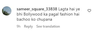 एक यूजर ने कमेन्ट करते हुए लिखा, 'लगता है ये भी बॉलीवुड का नया ट्रेंड है, बच्चों का चेहरा छुपाना'। दूसरे यूजर ने लिखा, 'दुनिया से कुछ अलग हैं क्या आपके बच्चे, इतना नौटंकी क्यों करना है'। एक अन्य यूजर ने लिखा, 'कायली जेनर ने अपनी बच्ची की फोटो दिखा दी, ये लोग ऐसा क्यों करते हैं'।