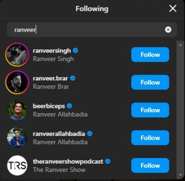 हालांकि जब हमने जाकर चेक किया तो तस्वीरें कुछ और ही बयां कर रही थीं। खबरों की मानें तो रणवीर और निक्की शर्मा ने इंस्टाग्राम पर एक-दूसरे को फिर से फॉलो कर लिया है जिसके बाद से ब्रेकअप की अफवाह पर फिलहाल के लिए लगाम लग गया है।