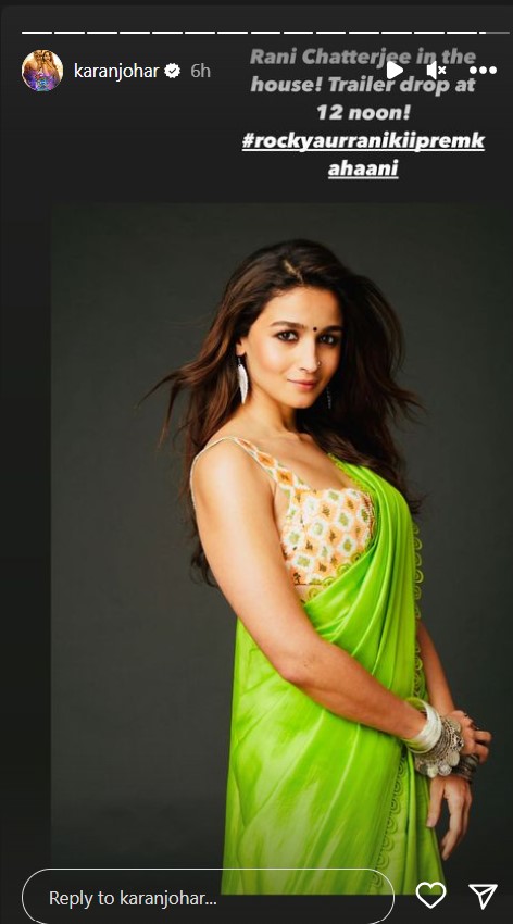 The date when you get a closer look into Rocky & Rani’s prem kahaani as the ✨TRAILER✨ rolls out - we’re so excited for you to finally see it! #RockyAurRaniKiiPremKahaani, a film by Karan Johar in his 25th anniversary year - in cinemas on 28th July.#RRKPK pic.twitter.com/oHVF54kYoa
