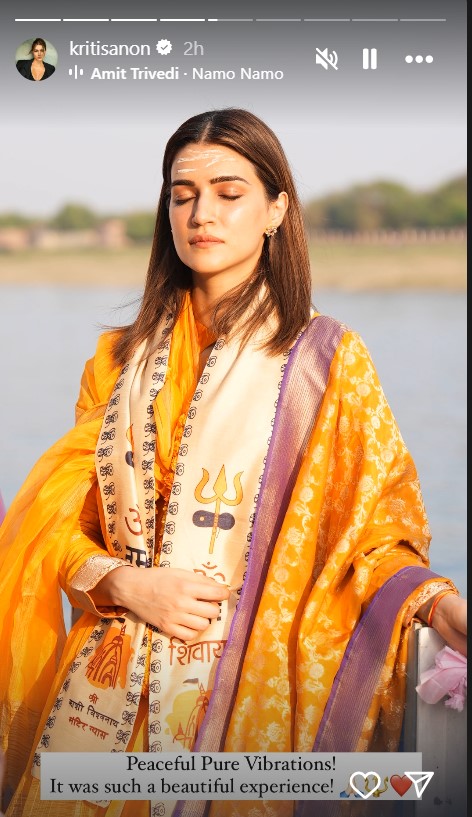 कृति सेनन ने काशी से दर्शन के बाद की फोटो शेयर कर लिखा कि यहां का माहौल उन्हें शांत और सुकून देने वाला लगा।