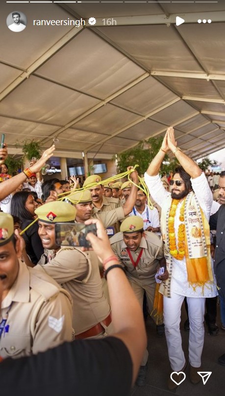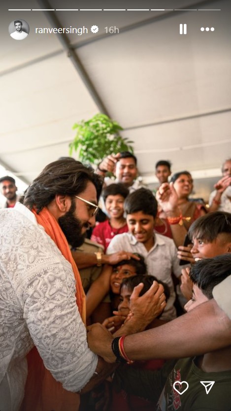 सफेद कुर्ते पयजामे में आए रणवीर ने यहां के लोगों से हाथ मिलाया।