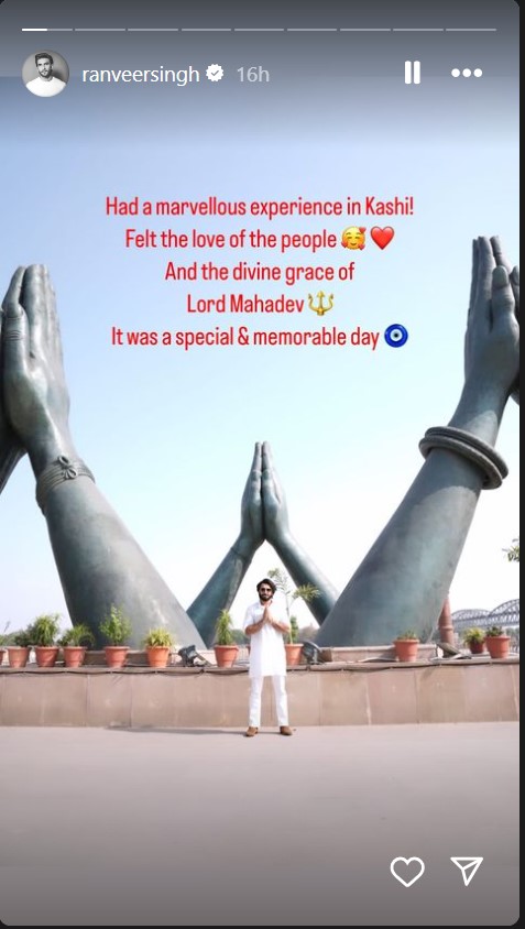 एक्टर ने नमो घाट से हाथ जोड़ते हुए अपनी एक फोटो शेयर की। इसके कैप्शन में उन्होंने लिखा, 'काशी में अद्भुत अनुभव रहा। यहां के लोगों का प्यार भी महसूस किया और महादेव का आशीर्वाद भी लिया। ये दिन बहुत स्पेशल और यादगार रहा।'