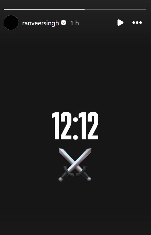 अभिनेता ने इंस्टाग्राम अकाउंट से सभी पोस्ट हटा दी है, लेकिन एक स्टोरी नजर आ रही है। इसमें दो तलवार वाली इमोजी के साथ 12:12 लिखा हुआ है। हालांकि, उन्होंने बहुत ज्यादा जानकारी इस बारे में नहीं दी है। ऐसा माना जा रहा है कि रणवीर कल दोपहर को धुरंधर फिल्म से अपना लुक शेयर कर सकते हैं। शायद यह उन्होंने फिल्म को लेकर बज बनाने के लिए किया है, जिससे हर किसी की नजरें उनकी पोस्ट पर रहे।