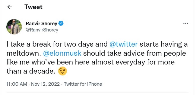 Ranvir Shorey ने ट्विटर को लेकर दी एलन मस्क को सलाह- मुझसे सीखें चलाना, पढ़ें पूरी खबर