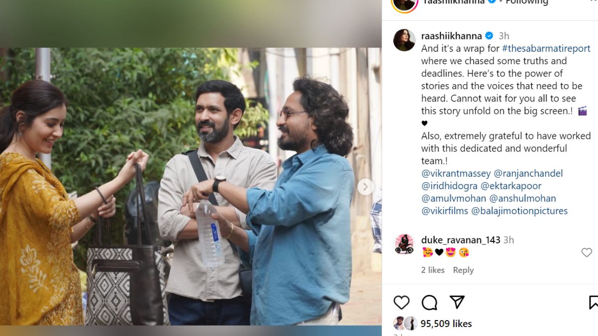 इन फोटो के कैप्शन में राशि खन्ना ने लिखा है- और ये द साबरमती रिपोर्ट का समापन है। यहां हमने कुछ सच्चाईयों और समय सीमा को अच्छे से फॉलो किया। यह कहानियों की ताकत और कुछ ऐसी आवाजे हैं, जिन्हें सुनने की जरूरत है।