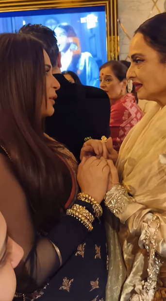 इस वीडियो में दिग्गज अभिनेत्री पहले तो ऋचा चड्ढा से उनका हालचाल ले रही हैं, फिर वह थोड़ा नीचे झुककर प्यार से प्रेग्नेंट अभिनेत्री के पेट पर किस करके उनके आने वाले बच्चे को अपना आशीर्वाद देती हुई नजर आ रही हैं। इतना ही नहीं, इस वीडियो में रेखा ऋचा चड्ढा को कुछ समझा भी रही हैं।