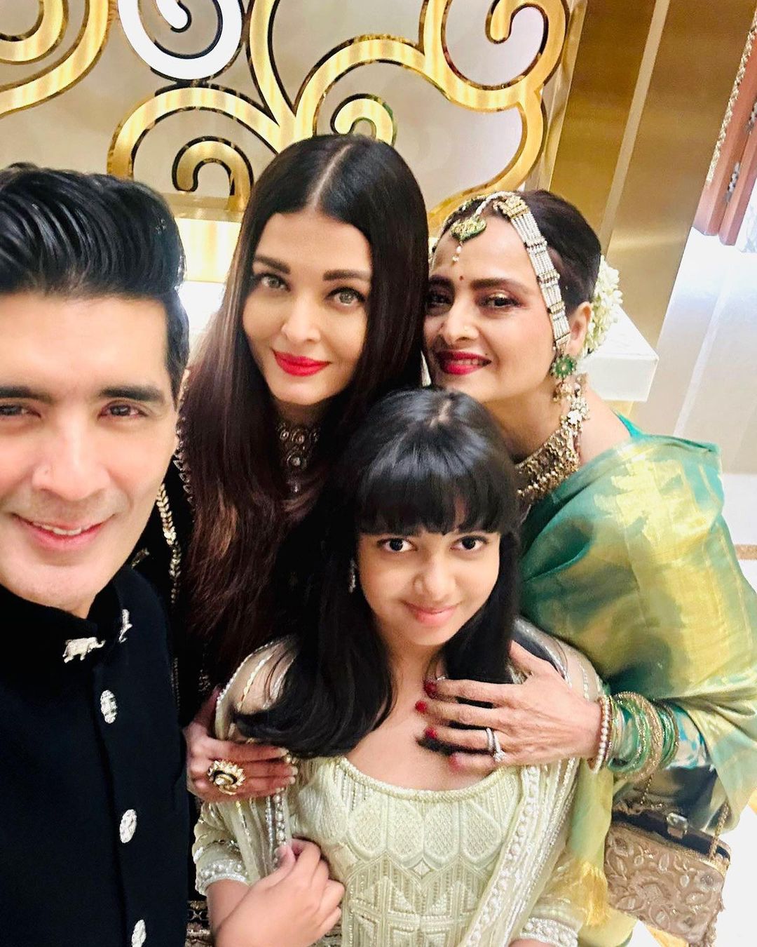 इस दौरान शाहरुख खान, सलमान खान, दिशा पाटनी, रेखा, श्रद्धा कपूर, रणवीर सिंह, गौरी खान, सुहाना, काजोल, प्रियंका चोपड़ा, आलिया भट्ट, रश्मिका मंदाना से लेकर वरुण धवन समेत तमाम स्टार्स नजर आए। इसी बीच अब एक क्यूट फोटो सामने आई है जिसमे रेखा अमिताभ बच्चन की बहू और पोती के साथ नजर आ रही है।