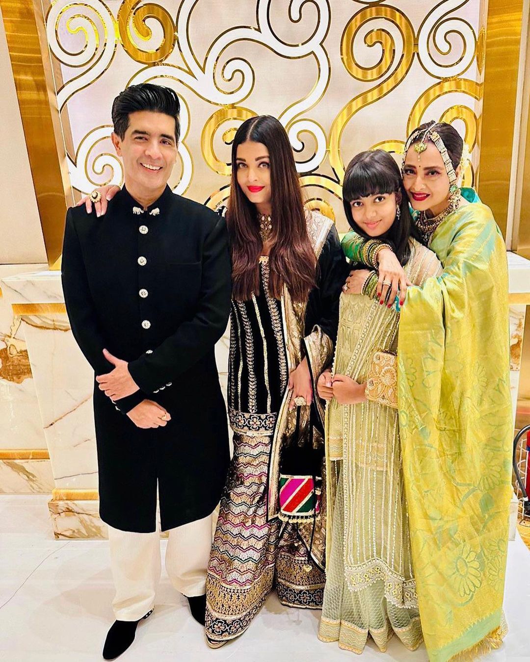 नीता मुकेश अंबानी कल्चरल सेंटर इवेंट की अनदेखी फोटो फेमस डिजाइनर मनीष मल्होत्रा ने सोशल मीडिया पर साझा की है। इस तस्वीर में ऐश्वर्या राय बच्चन, मनीष मल्होत्रा, रेखा और आराध्या नजर आए हैं। रेखा ने आराध्या को गले लगवाकर फोटो खिंचवाई तो दूसरी में वह ऐश्वर्या पर भी प्यार बरसाती नजर आ रही हैं।