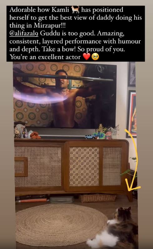 ऋचा चड्ढा ने पति की तारीफ में कहा, "कमाल है कि कमली ने ऐसी जगह बैठी है, ताकि वह मिर्जापुर में डैडी को उनके एक्ट के सबसे बेहतरीन सीन को देख सके। अली फजल, गुड्डू बहुत बढ़िया है। कमाल का, सुसंगत, हास्य और गहराई के साथ शानदार प्रदर्शन। तारीफ को स्वीकार करो। आप पर बहुत गर्व है। आप एक बेहतरीन अभिनेता हैं।"