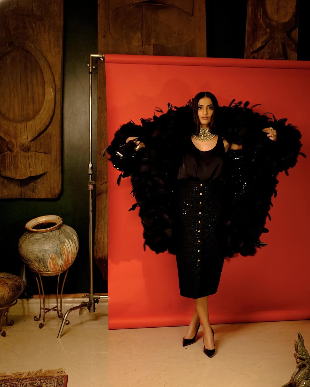 सोनम कपूर के लुक ने भी लाइमलाइट बटोरने का एक मौका नहीं छोड़ा। एक्ट्रेस ने सब्यसाची की 25वीं एनिवर्सरी के लिए वेस्टर्न लुक को चूज किया। उन्होंने अपने लुक को ब्लैक वनपीस और फर जैकेट के साथ पूरा किया था।