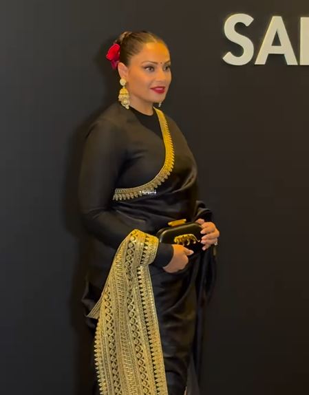 बिपाशा बसु भी इस इवेंट का हिस्सा बनी थीं। उन्होंने इवेंट में ब्लैक साड़ी पर गोल्डन बॉर्डर के साथ अपने आउटफिट को फ्लॉन्ट किया। उन्होंने इस साड़ी के लिए फुल स्लीव ब्लाउज और हाई बन को पेयर किया था।