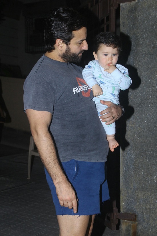 नन्हें तैमूर डैड सैफ़ के गोद में जैसे कुछ सोचते हुए नज़र आ रहे हैं। आप देख सकते हैं इन तस्वीरों में तैमूर कितने क्यूट लग रहे हैं।