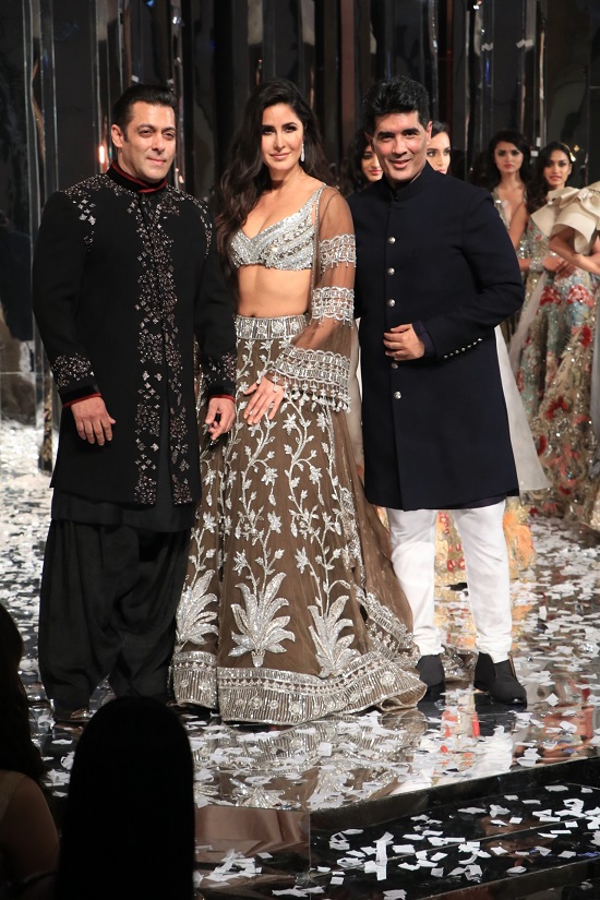 इस दौरान सलमान ख़ान अपने पसंदीदा रंग ब्लैक कलर की शेरवानी में नजर आये। वहीं, कटरीना लहंगे में दिखीं। आप देख सकते हैं दोनों इस मौके पर बेहद जंच रहे हैं। आखिर में मनीष मल्होत्रा ने रैंप पर आकर दोनों का साथ दिया और फैशन शो एंड किया। साथ ही इस शो में बॉलीवुड की कई अभिनेत्रियां मौजूद थीं। नीचे की तस्वीर में आप यूलिया वंतुर, सारा अली ख़ान, ख़ुशी कपूर, संगीता बिजलानी, मनीष मल्होत्रा, माधुरी दीक्षित, जाह्नवी कपूर, अथिया शेट्टी, डेज़ी शाह और सोफिया चौधरी को देख सकते हैं।