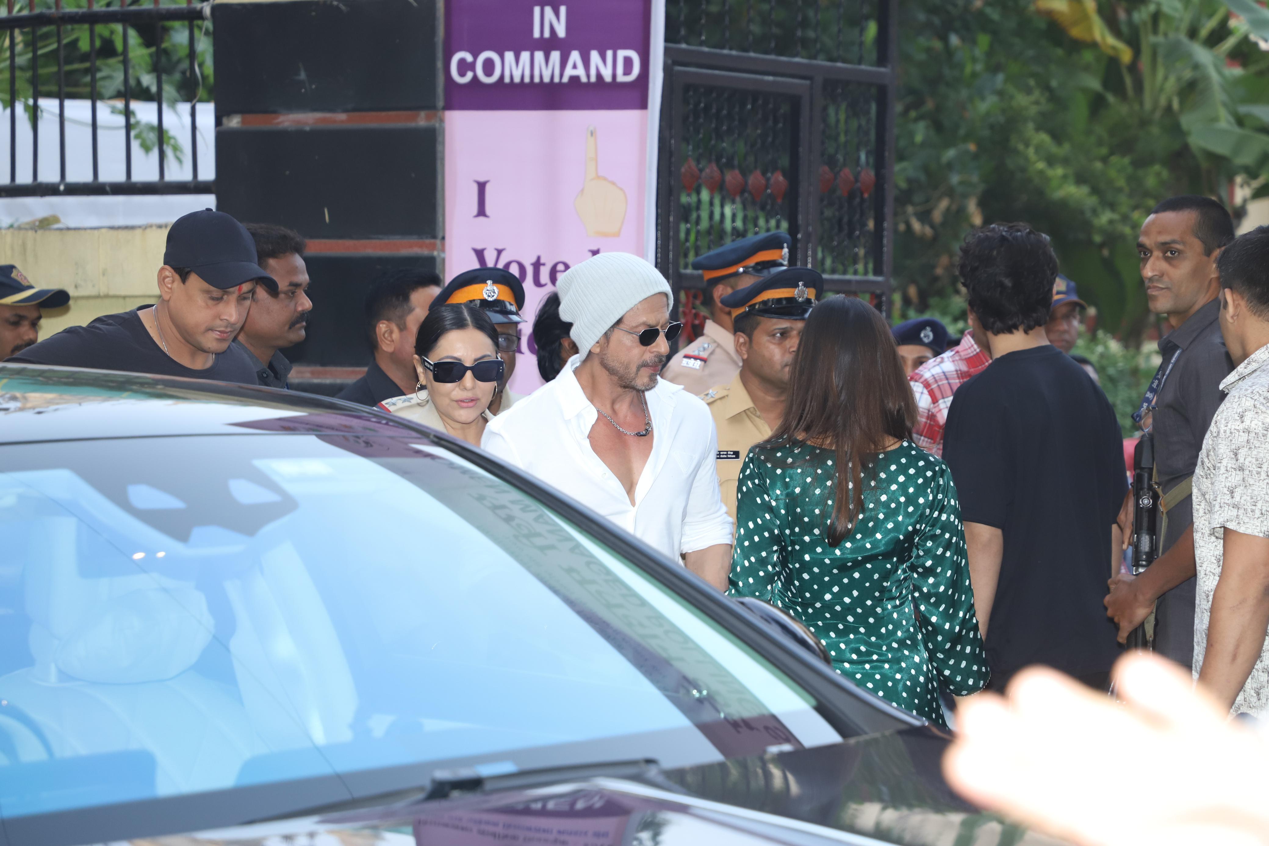 सलमान खान के बाद अभिनेता शाह रुख खान भी अपने पूरे परिवार के साथ माउंट मैरी वोटिंग बूथ पर मतदान करने पहुंचे हैं। इस दौरान उनके साथ पत्नी गौरी खान, बेटा आर्यन खान और बेटी सुहाना खान नजर आईं।