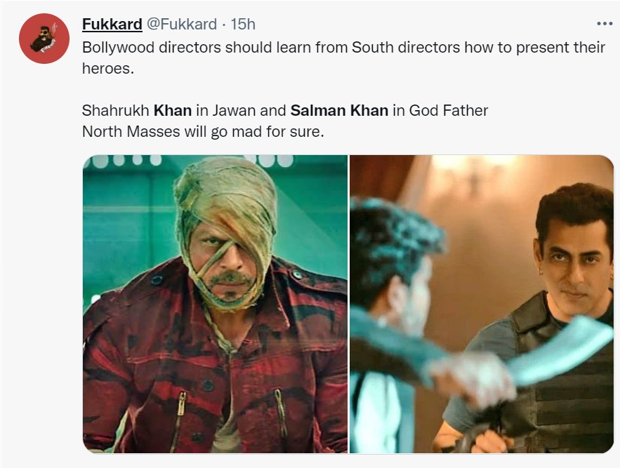 अब बात करते हैं सलमान खान को लेकर फैंस के रिएक्शन की। ट्रेलर सामने आने के बाद सोशल मीडिया पर फैंस सलमान को लेकर अपनी एक्साइटमेंट जाहिर कर रहे हैं। यहां तक कि सलमान और शाहरुख का कंपैरिजन भी किया जा रहा है। एक फैन ने लिखा, 'बॉलीवुड डायरेक्टर्स को साउथ डायरेक्टर्स से सीखना चाहिए कि अपने हीरो को कैसे प्रेजेंट किया जाता है।' फैन ने 'जवान' से शाहरुख खान और 'गॉडफादर' से सलमान खान की फोटो शेयर करते यह तुलना की। वहीं दूसरे फैन ने कहा, 'नॉर्थ हो या साउथ, इंडिया के सबसे बड़े मेगास्टार सलमान खान पूरे भारतीय उपमहाद्वीप में सेलिब्रेट किए जाते हैं।'