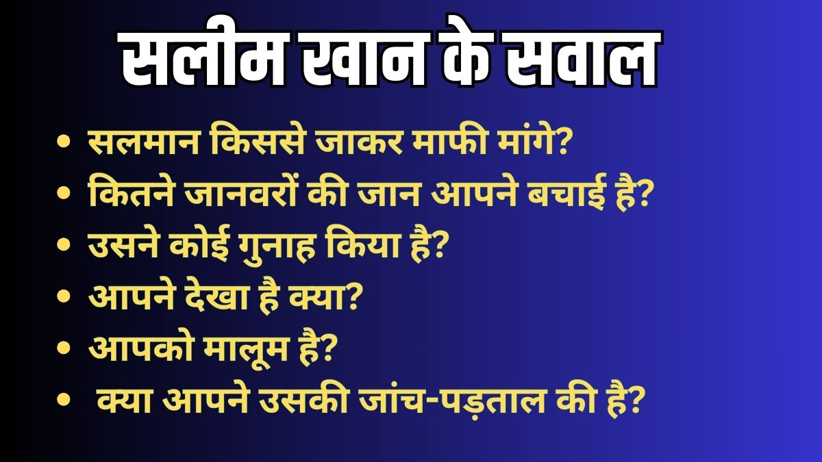 सलीम खान ने आगे ये भी बताया कि सलमान खान ने उन्हें ये बताया था कि जब ये सब हुआ, तो उस वक्त वह (Salman Khan) उस जगह मौजूद ही नहीं थे। सलीम खान ने अपनी चिंता व्यक्त करते हुए कहा, "मेरे बेटे को जानवर मारने का कोई शौक नहीं है। वह तो जानवरों से प्यार करता है"।