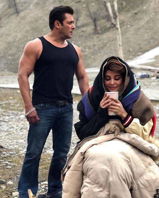 रेमो डिसूजा के निर्देशन में बन रही रेस 3 का कुछ काम सलमान के केस की वजह से बाकी रह गया था जिसे कश्मीर में पूरा किया जाएगा। फिल्म की शूटिंग के दौरान की कुछ तस्वीरें आई हैं, जिसमें से एक तस्वीर बड़ी ही प्यारी है। वादियों के सर्द मौसम में जैकलिन फर्नांडिस का बुरा हाल हो गया है l वो रजाई-कम्बल ओढ़ कर, गर्म काफ़ी के ग्लास से ख़ुद को मौसम की मार से बचा रही हैं लेकिन सलमान खान सिर्फ़ एक बनियान में दिख रहे हैंl वैसे तो फिल्म में उनका बहुत सारा एक्शन है लेकिन दोनों यहां गाने की शूटिंग करने आये हैं l