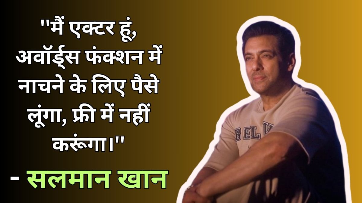 सलमान ने मुझसे पूछा कि तुमने कितने पैसे लिए हैं, मैंने कहा भाई मैंने कोई पैसा नहीं लिया। तब सलमान मुझ पर हंसने लगे और बोले हमने इस अवॉर्ड्स फंक्शन में परफॉर्मेंस करने की फीस चार्ज की है।