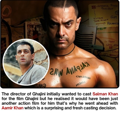 ट्यूसडे ट्रिविया ने आमिर खान की सुपरहिट फिल्म से जुड़ा ये थ्रो-बैक किस्सा अपने इंस्टाग्राम अकाउंट पर शेयर किया है। उन्होंने बताया कि असिन और आमिर खान स्टारर गजनी में ए आर मुरुगदास पहले सलमान खान को कास्ट करना चाहते थे, लेकिन बाद में उन्हें ये एहसास हुआ कि ये मूवी सलमान खान के लिए महज एक एक्शन फिल्म होगी।