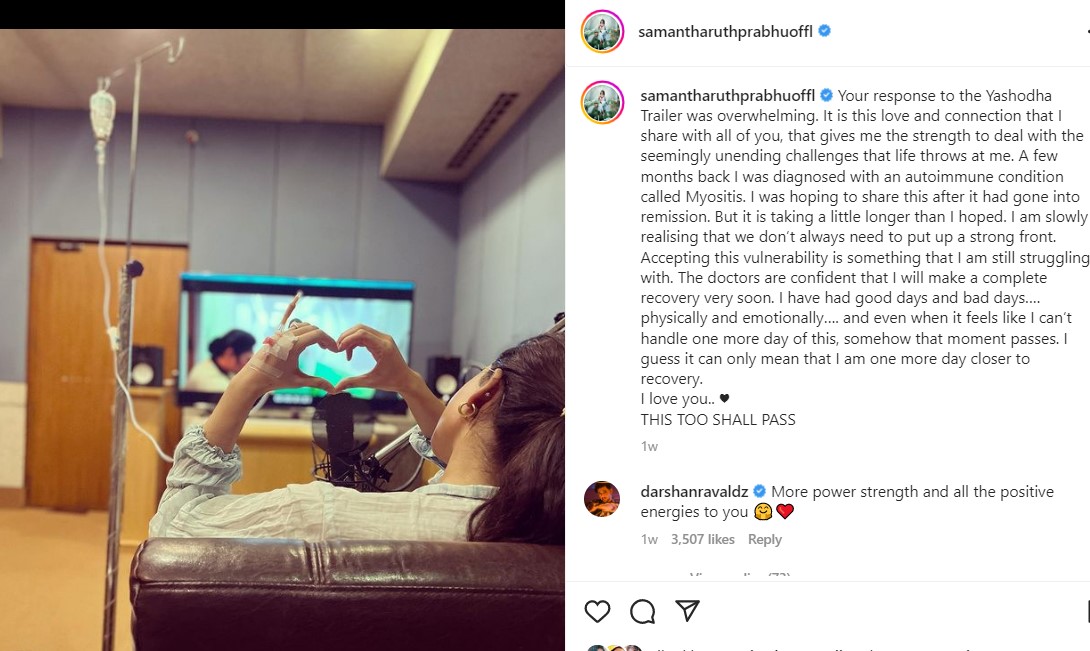 समांथा को मायोसाइटिस की बीमारी है। यह एक ऑटो इम्यून सिस्टम है, जिसमें पेशंट काफी कमजोर महसूस करता है। समय के साथ स्थिति और ज्यादा खराब होती चली जाती है। इस बीमारी से जूझ रहे व्यक्ति को थकान, कमजोरी, वजन उठाने में दिक्कत जैसी समस्या होती है।