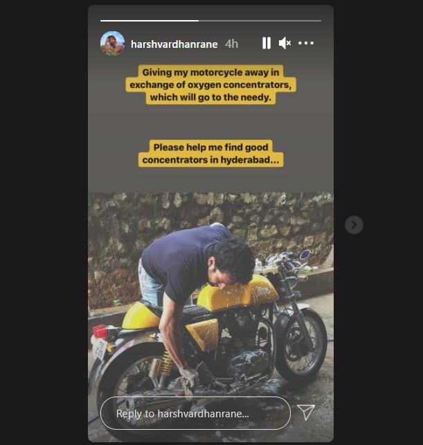 ऑक्सीजन कंसंट्रेटर के बदले बाइक बेचने के लिए तैयार हैं हर्षवर्धन राणे, सोशल मीडिया पर किया पोस्ट