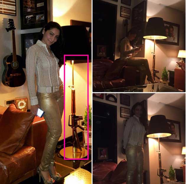 दरअसल, इन तस्वीरों में वो एक राइफल के साथ पोज देती नजर आईं और ये तस्वीरें उनके घर के ड्रॉइंग रूम की थींं। अब इन तस्वीरों को देख इससे पहले कि आप कुछ और सोंचे, आपको बता दें कि ऐसा-वैसा कुछ नहीं है। इन तस्वीरों में नजर आ रहा राइफल असल में एक लैंप है।
