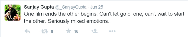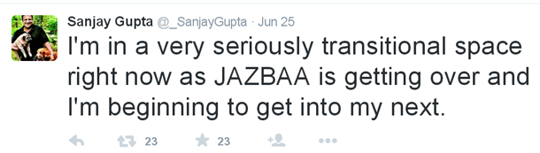 गुप्ता के निर्देशन में ऐश्वर्या राय बच्चन और इरफान खान स्टारर ‘जज्बा’ की शूटिंग इसी साल की शुरुआत में शुरू हुई थी। संजय गुप्ता ने ट्विटर पर लिखा, ‘मैं गंभीर बदलाव के दौर में हूं। फिलहाल ‘जज्बा’ पूरी होने वाली है और मैं अपनी अगली फिल्म की तैयारी शुरू कर रहा हूं।’