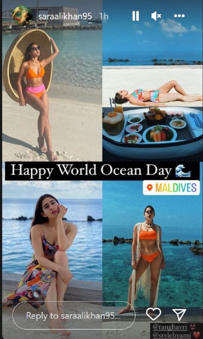 सारा अली खान ने तस्वीरें शेयर करते हुए लोकेशन मालदीव टैग किया है
