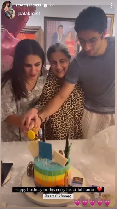 सारा अली खान ने अपना 28वां बर्थडे अपनी मां अमृता सिंह और भाई इब्राहिम अली खान (Ibrahim Ali Khan) के साथ सेलिब्रेट किया। एक्ट्रेस ने अपनी इंस्टाग्राम अकाउंट पर बर्थडे सेलिब्रेशन की फोटोज भी शेयर की हैं। एक तस्वीर में वह अपनी मां और भाई के साथ केक काटती हुई दिखाई दे रही हैं।
