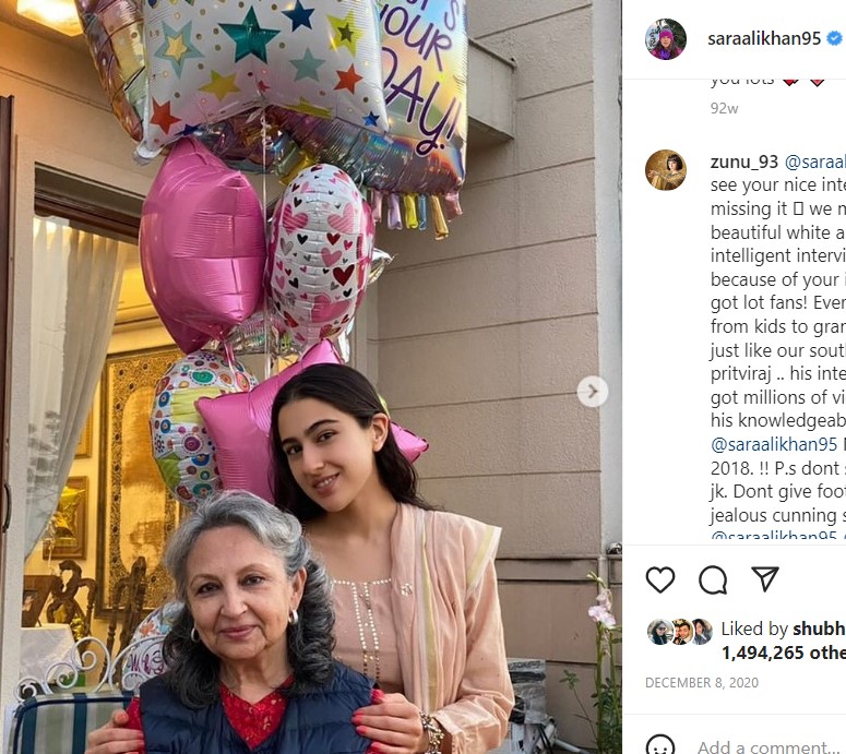 सारा ने बताया कि शर्मिला टैगोर को वर्तमान में हो रही चीजों की जानकारी रखना अच्छा लगता है। उनकी जनरल नॉलेज भी अच्छी है। वह बहुत ही क्लासी हैं और दुनिया के तमाम मुद्दों पर उनके एक राय है। हमारे बीच फिल्मों से हटकर इन सब पर अधिक बातचीत हुई है।