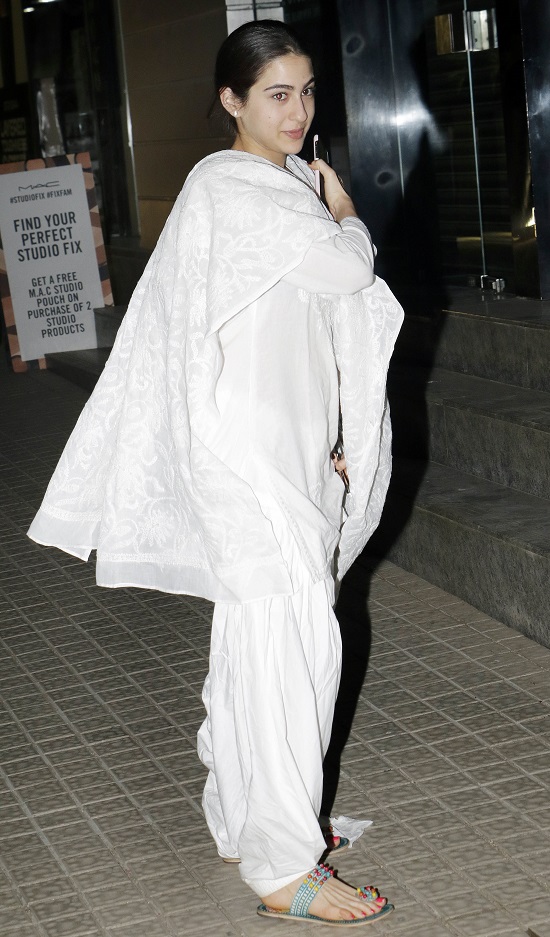 इस बीच सारा रविवार देर शाम मुंबई के जुहू इलाके में स्पॉट की गईं! दरअसल, सारा एक सिनेमा हॉल फ़िल्म देखने के लिए पहुंची थीं! आप देख सकते हैं इस ट्रेडिशनल अंदाज़ में वो कितनी चार्मिंग लग रही हैं!