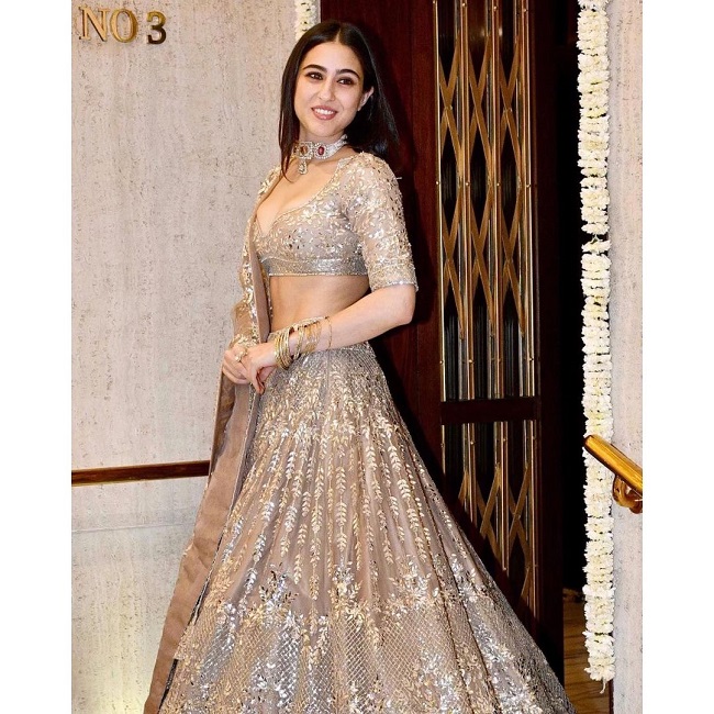 Sara Ali Khan दिवाली पार्टी पर मनीष मल्होत्रा की डिजाइन की हुई चनिया चोली पहने आईं नजर, देखें वायरल तस्वीरें