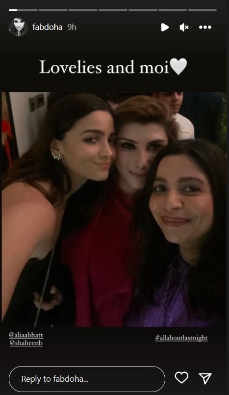 किंग खान के बर्थडे बैश में शामिल हुईं फैब एंटरटेनमेंट की सीईओ और प्रोड्यूसर फौजिया आदिल बट ने अपनी इंस्टा स्टोरी पर इस पार्टी में शामिल हुए सितारों की फोटो शेयर की।