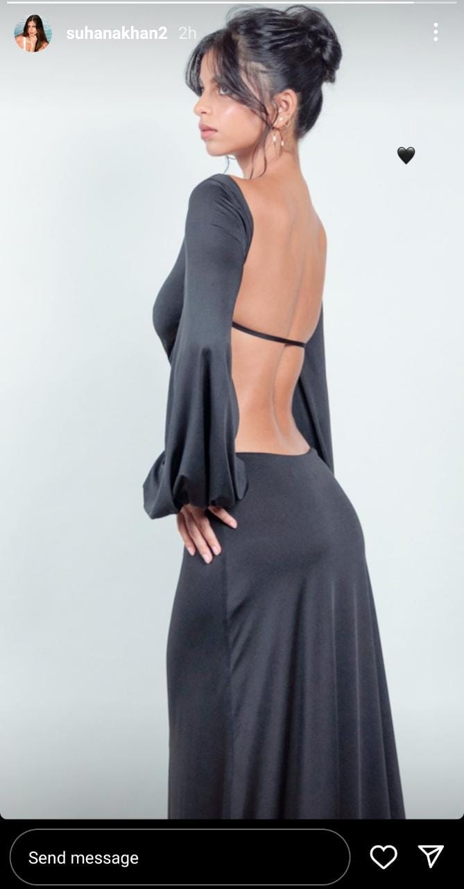 शाह रुख खान की लाडली सुहाना खान ने अपनी इंस्टाग्राम स्टोरी पर अपने एक लेटेस्ट लुक की तस्वीर शेयर की है। सुहाना की ये बोल्ड तस्वीर हर किसी की धड़कने बढ़ा रही है। तस्वीर में आप देख सकते हैं कि सुहाना ने फुल बैकलेस ब्लैक कलर की सैटिन ड्रेस पहनी हुई है। वहीं सुहाना की इस ड्रेस में बैलून स्लिव्स हैं और नीचे से गाउन लुक है। बैक से सुहाना की ये ड्रेस सिर्फ एक स्ट्रैप से रुकी हुई है जो बेहद ही हॉट नजर आ रही है। सुहाना का ये हॉट उनके हर किसी को दीवाना बना रहा है। वहीं उन्होंने अपने बालों को स्टाइल देने के लिए मैसी टच के साथ एक बड़ा सा बन बनाया हुआ है। वहीं आगे से बालों को निकालकर स्टाइलिश लुक दिया गया है। एसेसीरीज की बात करें तो उन्होंने अपने कानों में सिर्फ ईयर रिंग्स पहने हुए हैं और सिंपल मेकअप के साथ अपने इस लुक को पूरा किया है। सहुाना के इस ड्रेस और उनके लुक की चर्चा इंटरनेट की तेजी हो रही है।