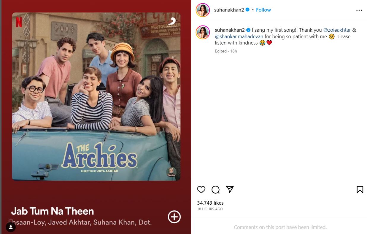 सुहाना खान ने इस गाने का पोस्टर फैंस के साथ शेयर करते हुए लिखा, "मैंने अपना पहला गाना गाया है। जोया अख्तर और शंकर महादेवन मेरे साथ इतना सब्र रखने के लिए आपका बहुत-बहुत शुक्रिया। प्लीज इसको दयालुता के साथ सुने।