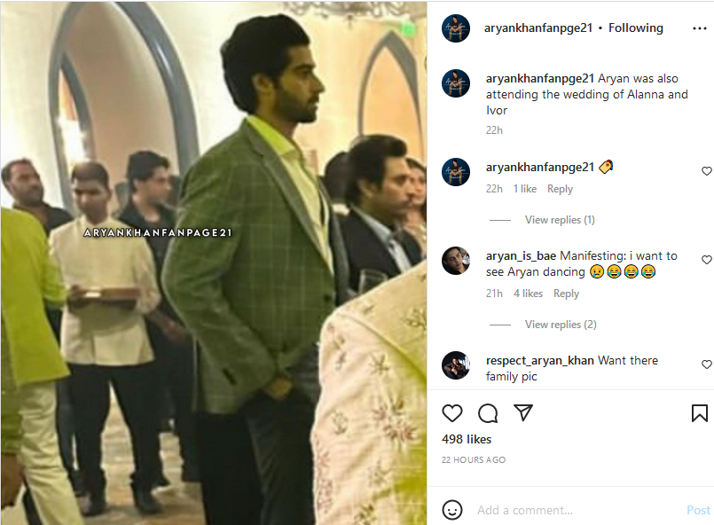 अलाना पांडे और आइवर मैक्रे की शादी के बाद भी के वेडिंग फंक्शन से कई फोटोज वीडियोज वायरल हो रहे हैं। इसी बीच अब आर्यन खान का एक फोटो सामने आया है, जिस में वो भी फंक्शन में दिख रहे हैं। इस तस्वीर को देखकर हर कोई यही सोच रहा है कि आर्यन ने शादी में सीक्रेट तरीके से एंट्री की है, लेकिन बता दें कि ऐसा नहीं है। आर्यन की वायरल हो रही तस्वीर अलाना की शादी की नहीं है। ये तस्वीर उस वक्त की है जब दोनों के बीच क्रश की खबरें सामने आईं थीं। इस पार्टी में आर्यन, अनन्या को इग्नोर करते नजर आए। इस बात को लेकर अनन्या और आर्यन काफी सुर्खियों में रहे थे।