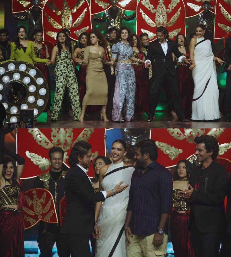 'जवान' की प्रेस मीट में शाह रुख खान के अलावा दीपिका पादुकोण (Deepika Padukone), एटली कुमार (Atlee Kumar) और विजय सेतुपति (Vijay Sethupati) समेत पूरी कास्ट शामिल हुई। इस इवेंट में अगर किसी की कमी थी, तो वह थीं एक्ट्रेस नयनतारा। प्रेम मीट मे शाह रुख ने दीपिका संग 'चलेया' गाने पर डांस किया। इसके साथ ही ढेर सारी मस्ती भी की।
