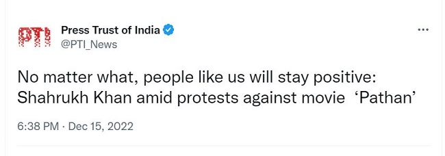 नई दिल्ली, जेएनएन। Shah Rukh Khan On Besharam Rang Row: बेशरम रंग शाह रुख खान की फिल्म पठान का गाना है, जिसे लेकर काफी विवाद हो रहा है। अब इस पर शाह रुख खान ने अपनी प्रतिक्रिया दी है। उन्होंने कोलकाता में हुए एक कार्यक्रम में इस विषय पर संबोधित करते हुए कहा, 'दुनिया चाहे कुछ भी करें लेकिन मेरे जैसे लोग हमेशा सकारात्मक रहेंगे।' इसके पहले उन्होंने कहा था, 'सोशल मीडिया पर मतों का दायरा काफी संकरा होता है। वह मानवीय स्वभाव को लिमिट करने का प्रयास करता हैं। मैंने कहीं पढ़ा है कि सोशल मीडिया के उपयोग से नेगेटिविटी बढ़ती है। इसके चलते भेदभाव और बांटने की प्रवृत्ति में भी बढ़ोत्तरी होती है।'