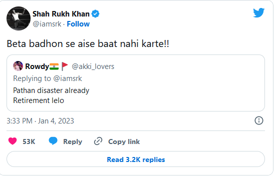 Shah Rukh Khan की पठान को डिजास्टर बताते हुए यूजर ने कहा रिटायरमेंट ले लो, भड़के एक्टर ने कहा- बड़ों से बात...