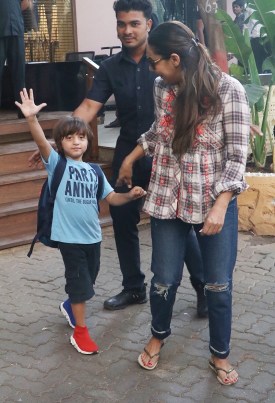 शाह रुख़ और गौरी अक्सर ही अबराम के साथ अपनी तस्वीरें सोशल मीडिया में शेयर करते रहते हैं। आप देख सकते हैं इस तस्वीर में अबराम हाथ हिलाकर फोटोग्राफरों का अभिवादन कर रहे हैं। अबराम ने देखा है कि पापा शाह रुख़ अपने बर्थडे पर यूं ही घर की बालकनी में आकर हाथ हिलाते रहते हैं और उस दौरान कई बार अबराम उनके गोद में भी होते हैं। ज़ाहिर है अबराम को भी ये मालूम हो चला है कि मीडिया को देखकर यूं हाथ उठाना है और उनका अभिवादन करना है! सो क्यूट न?