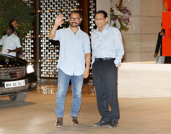 बॉलीवुड से भी कई स्टार्स इस पार्टी में पहुंचे! आप देख सकते हैं इस मौके पर आमिर ख़ान कुछ इस अंदाज़ में नज़र आये। अंबानी की पार्टी में आमिर हमेशा मौजूद रहते हैं और यह तो और भी स्पेशल मौका था यानी ईशा अंबानी की सगाई का मौका।
