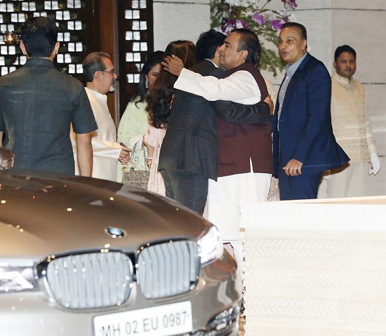 मुकेश अंबानी के छोटे भाई अनिल अंबानी अपनी पत्नी टीना अंबानी के साथ इस मौके पर मौजूद थे। सचिन तेंदुलकर समेत और भी कई विशिष्ट मेहमान इस सगाई पार्टी का हिस्सा बने।