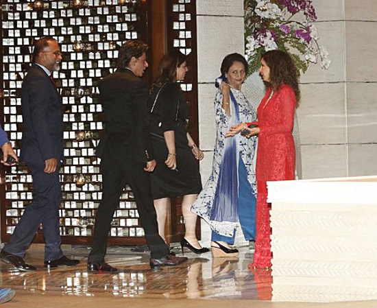शाह रुख़ ख़ान अपनी पत्नी गौरी ख़ान संग इस पार्टी में पहुंचे थे। मुकेश अंबानी के बेटे आकाश की सगाई के समय भी शाह रुख़ उन्हें शुभकामनाएं देने पहुंचे थे!