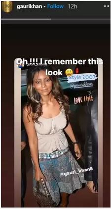 गौरी खान ने अपने इंस्टाग्राम आकउंट पर साल 2007 की कई तस्वीरें शेयर की हैं। इस 13 साल पुरानी तस्वीर में उनका तब और अब के लुक के में काफी अंतर हैं। इन 13 सालों में वह काफी बदल गई हैं। गौरी ने इस फोटो को अपनी इंस्टा स्टोरी पर भी शेयर किया है। इस दौरान आप देख कसते हैं कि उन्होंने सफेद टॉप और नीली स्कर्ट पहन रखी है। साथ ही उनके बालों में गोल्डन कलर का हाइलाइट्स किया हुआ है। इस ड्रेस के ससाथ गौरी ने भूरे रंग के चमड़े के जूते भी पहने हुए हैं। इन तस्वीरों को शेयर करते हुए गौरी ने लिखा, 'ओह !! मुझे यह लुक याद है।' इसी के साथ ही उन्होंने लिखा 'लव दिस'।